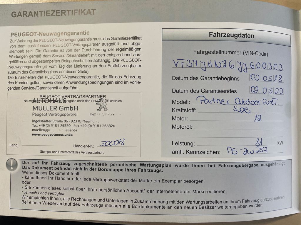 VIN: VF37JHNZ6JJ600303